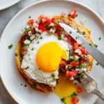 - Assemble the tostadas: Spread a generous layer of warm refried beans over each crispy tortilla. Sprinkle with grated sharp cheddar cheese, then place the cooked eggs on top. Use a slotted spoon or serving fork to add pico de gallo over the eggs. Add any optional garnishes such as hot sauce, avocado, or crumbled Cotijah or feta cheese. Serve immediately for best crispness.