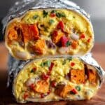 These Vegan Breakfast Burritos are a flavorful and hearty morning meal featuring a creamy cashew-based queso, crispy potato and bean hash, and a savory tofu scramble. Wrapped in large tortillas, they make perfect grab-and-go options that can be pan-fried for extra crispiness or frozen for later enjoyment.